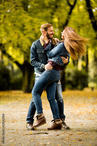 Fototapeta premium Young couple in autumn park