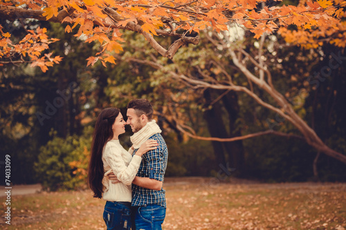 Fototapeta premium Young couple in autumn park