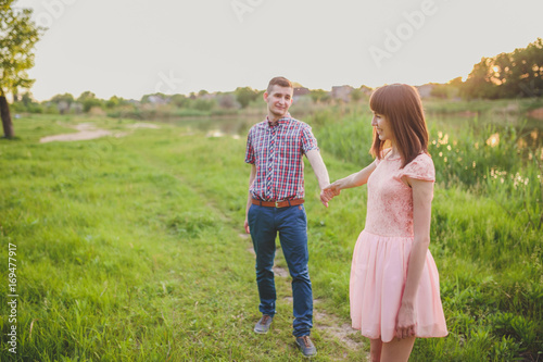 Fototapeta premium Young couple in love, Attractive man and woman enjoying romantic evening on...