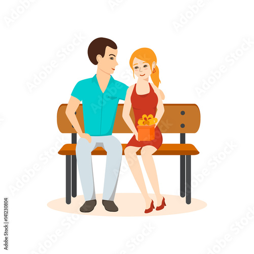 © Idey, Obraz premium Young couple in love, relax on bench in the park.