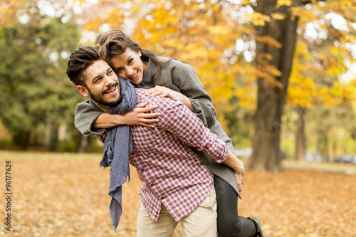 Fototapeta premium Young couple in the autumn forest