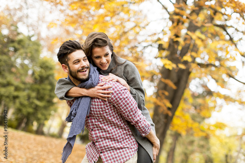 Fototapeta premium Young couple in the autumn forest
