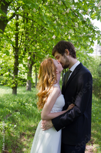 © Irina Brinza, Fototapeta premium Young couple kissing outdoors