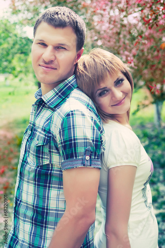 © merydolla, Fototapeta premium Young couple relaxing in park