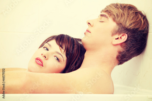 © Piotr Marcinski, Obraz premium Young couple taking a bath.