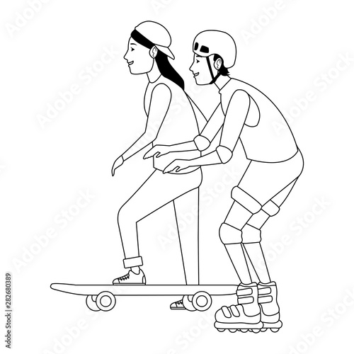 © Jemastock, Fototapeta premium Young couple training extreme sports in black and white