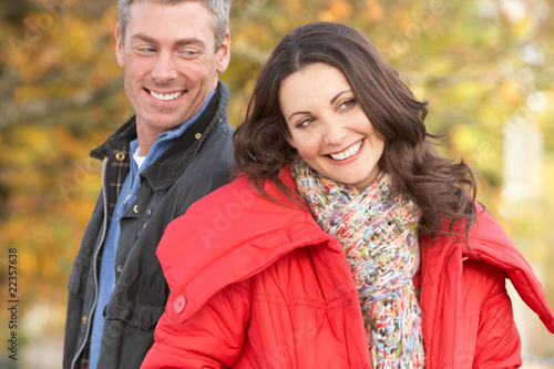 © micromonkey, Fototapeta premium Young Couple Walking Through Autumn Park