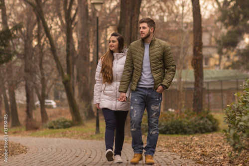 © HD92, Fototapeta premium Young couple walking winter autumn day