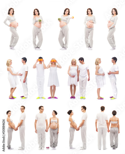 © Acronym, Naklejka premium Young couples expecting a baby isolated on white
