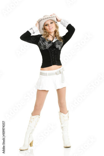 © Svetlana Radayeva, Fototapeta premium Young cowgirl woman dancing