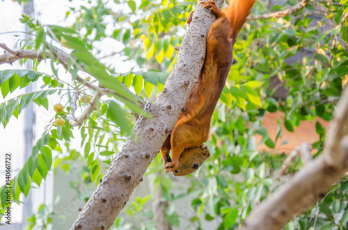 Obraz premium Young cute red Squirrel fur funny pet looking for food.