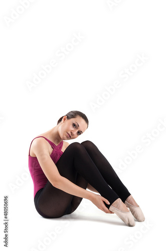Fototapeta premium Young dancer isolated on white background. Ballerina project.
