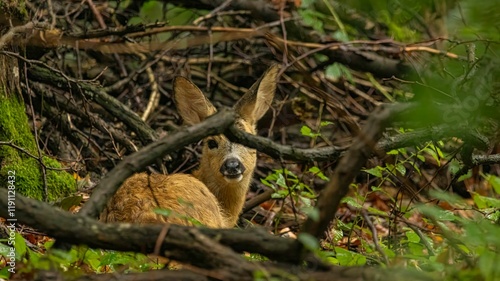 Obraz premium Young deer in a lush forest setting