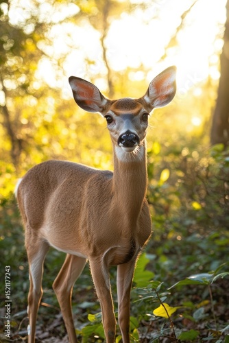© irul, Fototapeta premium Young deer in forest at golden hour