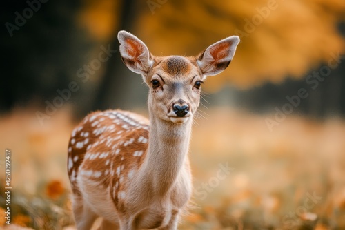 © Viktor, Fototapeta premium Young deer in sunlit forest clearing. AI generated