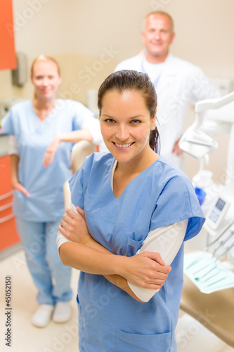 Fototapeta premium Young dentist dental team in stomatology clinic