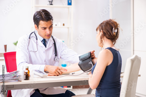 © Elnur, Fototapeta premium Young doctor checking woman's blood pressure