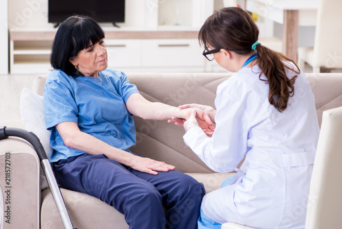 Obraz premium Young doctor visiting old mature woman for check-up