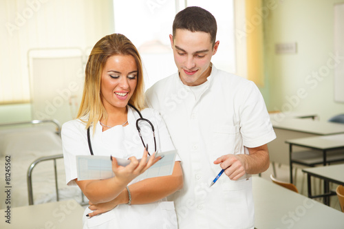 © BGStock72, Fototapeta premium Young doctors looking at results in the office