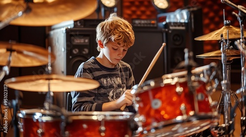 © nuryadin, Naklejka premium Young Drummer Concentrating on his Music