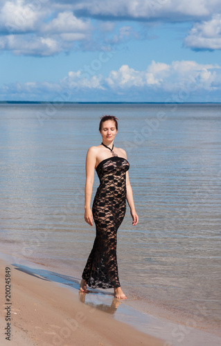 © vbaleha, Fototapeta premium Young elegant woman in black lace dress