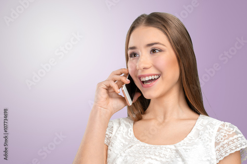 © fotofabrika, Fototapeta premium Young elegant woman talking on mobile phone
