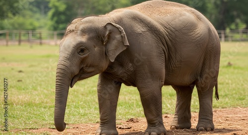 © Yulichatun, Obraz premium Young elephant in outdoor setting