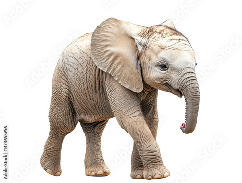 © Khmel, Fototapeta premium Young elephant walking gracefully in natural habitat on a transparent background, cut out