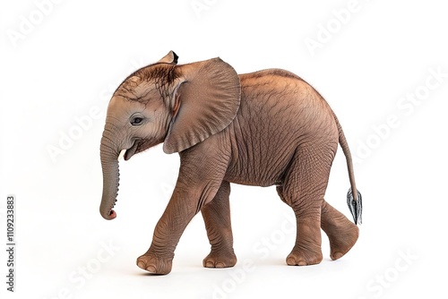 © Boris, Obraz premium Young elephant walking isolated on white background.