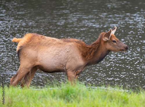 © Steve Samoyedny, Fototapeta premium Young elk walking along the lakeside