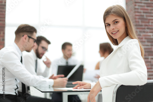 Obraz premium young employee sitting at his Desk in the office