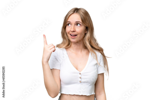 Fototapeta premium Young English woman over isolated background intending to realizes the solution while lifting a finger up