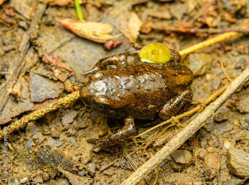 © Petr, Fototapeta premium young European fire-bellied toad (Bombina bombina) on the ground