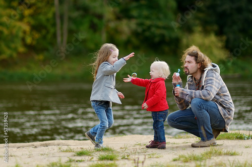 © MNStudio, Fototapeta premium Young father and his two little daughters