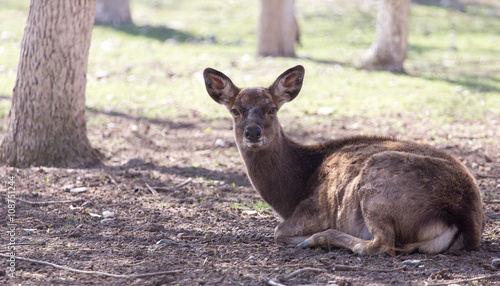 Fototapeta premium young female deer in a park on the nature