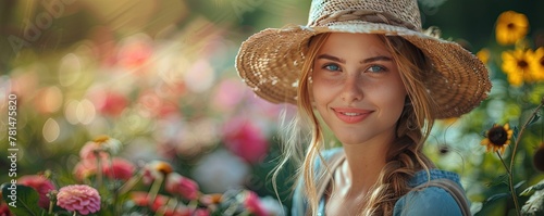 © Viacheslav, Obraz premium Young female gardener picking flowers outdoors