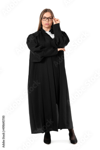 © Pixel-Shot, Fototapeta premium Young female judge on white background