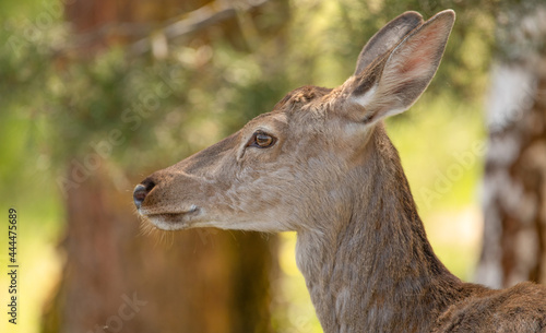 Fototapeta premium Young female red deer, portrait, close up.