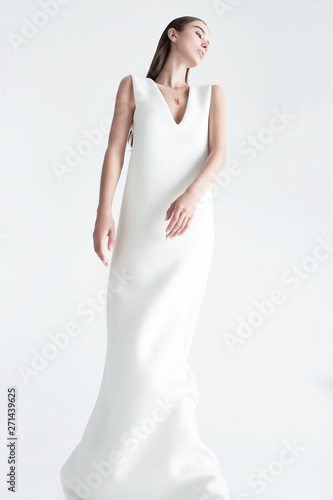 © Konstantin, Obraz premium Young female with stylish necklace with orange gemstone