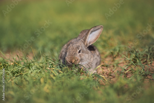 © Даша Швецова, Fototapeta premium Young fluffy rabbit in the field