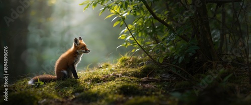 © TheWaterMeloonProjec, Obraz premium Young fox gazing at the nearby father fox