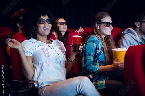 Obraz premium Young friends watching a 3d film