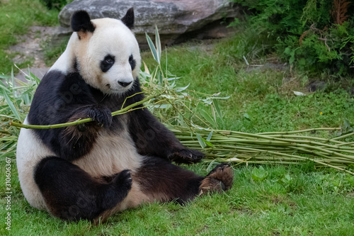 © Pascale Gueret, Fototapeta premium Young giant panda sitting in the grass, portrait