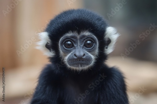 Fototapeta premium Young gibbon monkey staring with curious expression