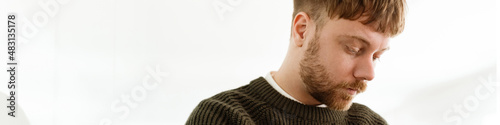 © Drobot Dean, Obraz premium Young ginger man writing down notes while working in office