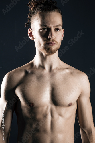 © EnginKorkmaz, Fototapeta premium Young ginger topless man studio portrait