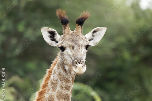 © Beate, Obraz premium Young giraffe looking at camera, portrait