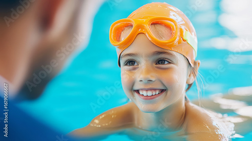 Naklejka premium Young girl embracing swimming techniques for fitness and fun