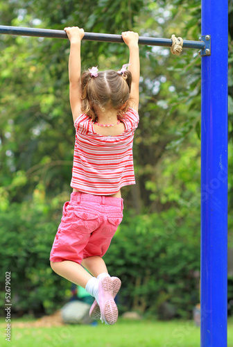 © Direk Takmatcha, Fototapeta premium Young girl holding on the bar