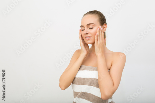 Fototapeta premium Young girl in bath towel pampering her skin